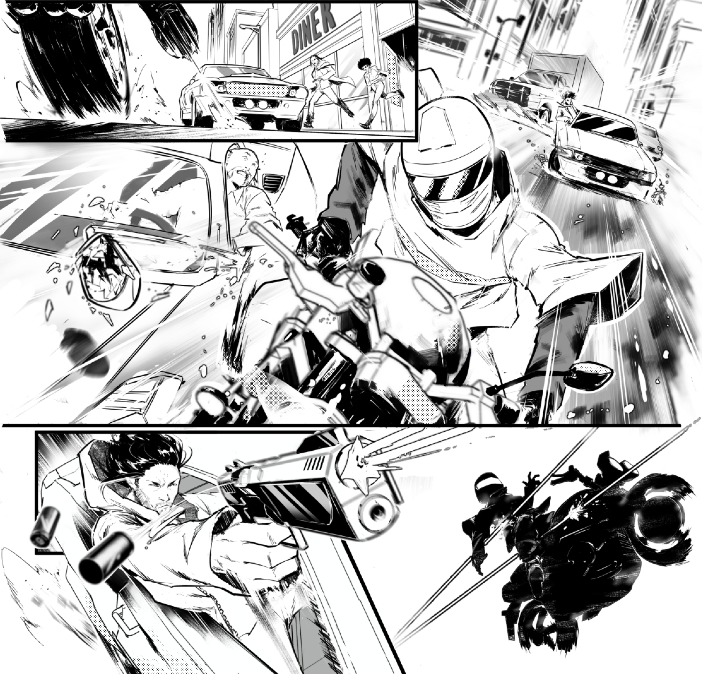 Inizio la mia carriera come freelancer per clienti privati. Esordisco nell’editoria nel 2016 collaborando con Christa Faust e Gary Phillips sulla serie Peepland pubblicata da Titan Comics.