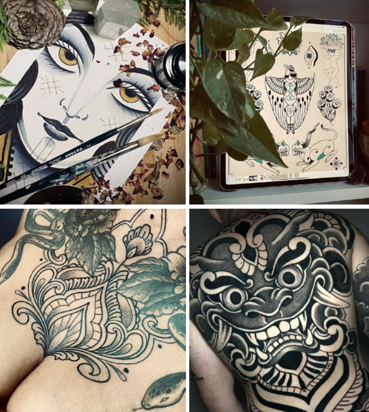 Nel mio lavoro unisco tecnica, attenzione alla composizione e interesse per il valore simbolico e narrativo del disegno sulla pelle, concependo il tatuaggio come un linguaggio che richiede precisione, consapevolezza e continua evoluzione.